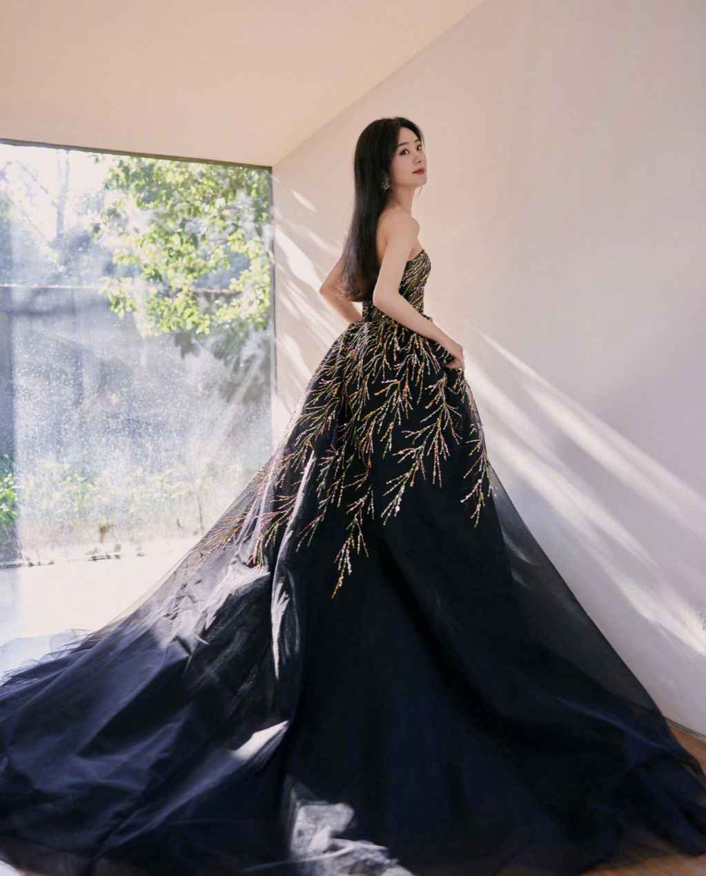 她的个子比较娇小,所以穿抹胸的款式相当的惊艳,黑色的纱裙也凸显了不一样的优雅气息,这是佩服她,用黑色都可以打造华丽又浪漫的气息,上身的效果也是极具大方和优雅。