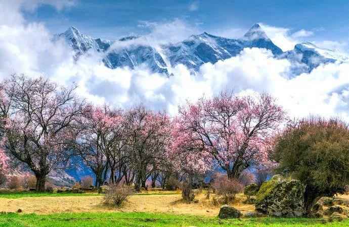 三月,一定要来林芝赴一场桃花之约。此时的林芝,早已成为了花的海洋,林间、河谷、田野、世外藏寨一片春意,粉红色的桃花争相怒放,美不胜收。