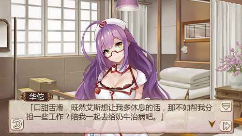 某天华佗的诊所内来了一位拜托她救治他家奶牛的商人,在艾斯的怂恿下,华佗答应了商人的请求。