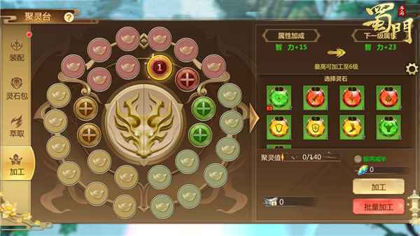 聚灵台上万千意,灵石加工持战力。蜀门世界中提升战力的方法千千万,聚灵台更是个中翘楚,灵石的装配、萃取及加工玩法也是极具魅力,随着版本的更新,灵石加工也是突破了上限,感受玩法的全新升级。