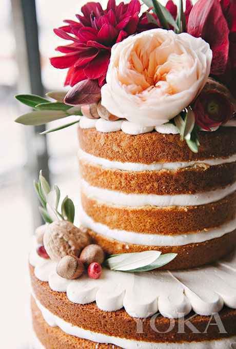 如果你是单身狗去参加别人的婚礼不免会有失落,我们都知道在心情低落时甜品是最有效的治愈良药,所以别只顾着参加人家的婚礼,现场为宾客准备的甜品才是你要寻觅的正经事儿。最近几年“裸蛋糕”在欧美火速流行起来,在各种婚礼晚宴酒会上,你都能看见它的身影,为什么叫它“裸”呢?其实相比传统蛋糕,是指蛋糕外层没有“奶油或者奶霜”这件外衣,将蛋糕层次中的材料完全“裸露”地展现在宾客眼前。通常只简单的搭配鲜花、绿叶和水果,不如传统蛋糕华丽,但却展现出所有原始食材的最真本味,反而形成了一种返璞归真的天然美感。