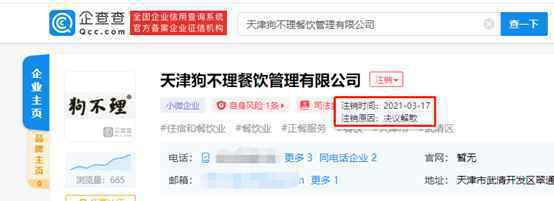 企查查数据显示,天津狗不理餐饮管理有限公司经营状态变更为注销,注销日期为3月17日,注销原因为决议解散。该公司曾于2020年11月25日进行简易注销公告,公开期为2020年11月26日至2021年1月9日。