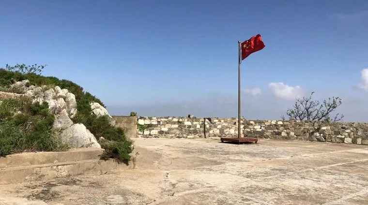 “敬礼!”挂旗、展旗、敬礼,没有国歌伴奏,没有仪仗队,国旗沿着旗杆、迎着海风冉冉升起,高高飘扬在蓝天。