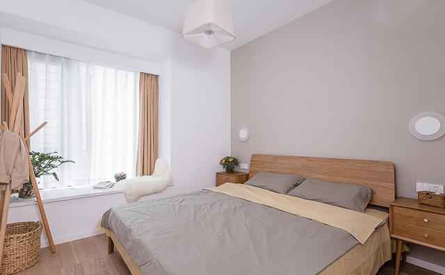木质的质地和优雅的灰色床单似乎在讲述一个动人的故事。浪漫与理性交织在一起,相互辉映,彰显独特品味。