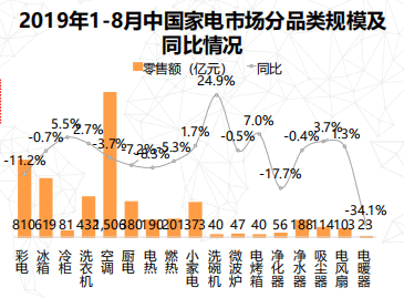 1 - 8月家电市场进入的几个行业危机下出现负增长软装