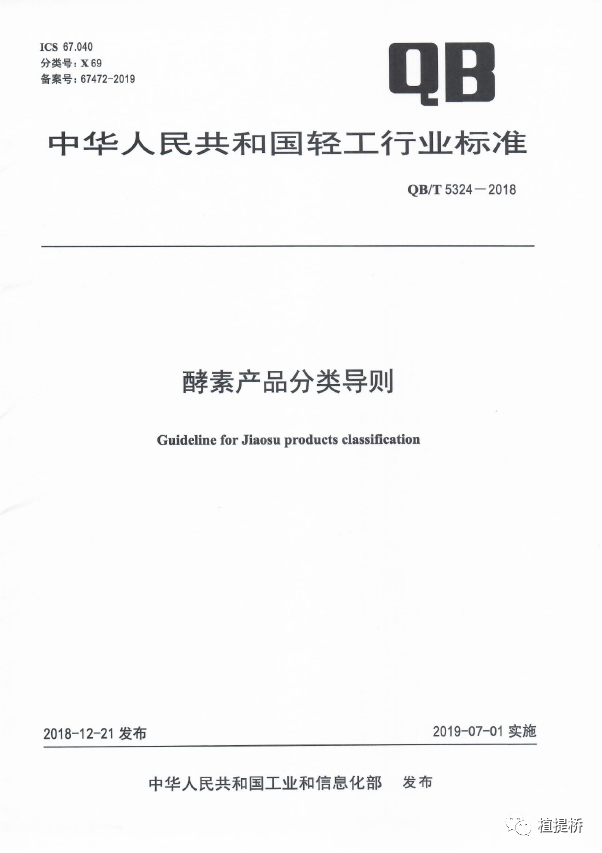 节选中华人民共和国轻工业行业标准QB/T5324-2018《酵素产品分类导则》
