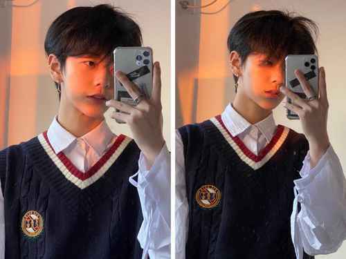 搭配海鸥线的针织背心,学院风的很完全,结果不必多说直接看图,帅气学长来喽~