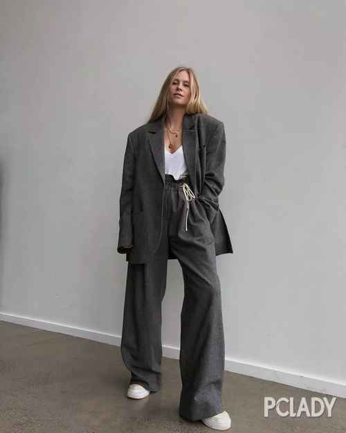 假如以为牛仔阔腿裤不够有特征的话,那阔腿的西装裤来一条怎样呢,搭配上一双AJ或NB的运动鞋,几乎不要太帅哦!从职场到陌头,都相对能轻松hold住。
