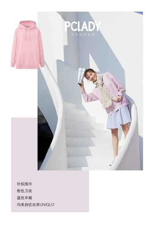自带花香的樱花粉有一种让人穿上它就秒变少女的魔力,UNIQLO这款连帽卫衣材质是肌肤触感温馨的棉质面料,版型宽松温馨,色彩清洁清爽~用粉色卫衣搭配同为马卡龙色系雾霾蓝色短裙,既能让少女感充足的表现,又不会过于单调~多说一句哦,这款卫衣另有很有其他的色彩,像是本年很盛行的薄荷绿那款也异常悦目!