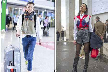 马甲并不是都是纽扣,针织面料具有中性气质,简约时尚非常提升气场。刘雯的机场穿搭时尚不夸张,给人亲近的感觉。她在宽松衬衫外面叠加了一件棕色针织小马甲,格纹和纯色的拼接让马甲极具设计感,围巾装饰更有英伦风范,搭配简单的牛仔裤可以展现不同之处。