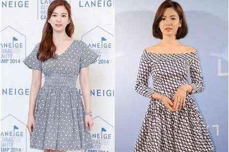 宋慧乔一直保持着姣好的身材,保持肌肤胶原蛋白的活力,也没有一味追求削瘦,所以腿部上还是可以看出有一点肉的。但是她每一次在银幕镜头面前显得比例绝佳,你会发现她十分喜欢穿着A字裙。V领宽袖的高腰碎花裙,一字肩黑白印花半裙,都是选择A字版型来让拥有典雅温柔的气质。