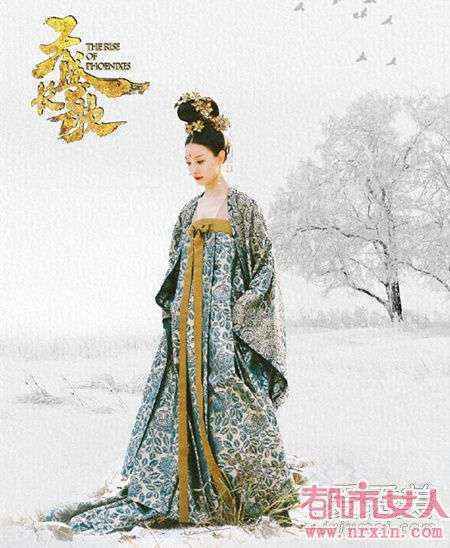 女装扮相的倪妮,穿抹胸长裙很大唐盛世的感觉。