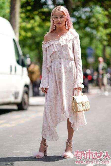 夏季穿蜜桃色裙子,吊带裙最清凉,至少从视觉上就会让你看上去凉快很多,不需要太抢镜的颜色也会让人觉得仙气十足。吊带裙的话,搭配高跟鞋、运动鞋,或是本季潮人增高最爱的短靴也是可以的,不过小编最喜欢的还是打凉鞋了,特别是平底鞋,不会很张扬,同时透着少女感。