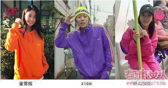 像蔡徐坤这套紫色运动装,袖子和裤腿边上就是明黄色的条纹,明黄色的运动装反而是跟大红色搭配,等等这些比较夸张的配色,就是它的风格之一了。