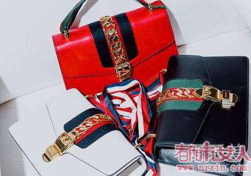 就是这一款,独特的金属链条是不是让你觉得很眼熟?没错,这就是gucci sylvie链条锁扣包,gucci经典酒神包款式很相似。