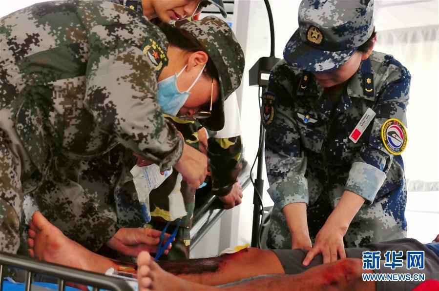 这是8月18日在老挝首都万象北郊拍摄的“和平列车—2019”人道主义医学救援联合演训活动全流程联合演练现场。当日,中国—老挝军队“和平列车—2019”人道主义医学救援联合演训活动暨医疗服务活动在老挝首都万象北郊开展全流程联合演练。