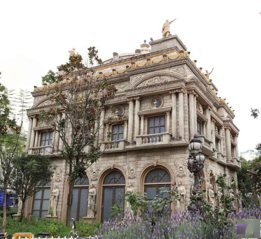 只见楼的四面墙皆是白色罗马柱,每一根柱上还有一尊女性雕塑,风格健美优雅。