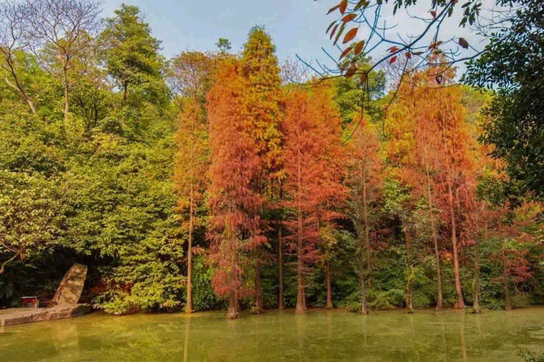 现在深秋时节,赏景也少不了大观湿地公园里面的落羽杉林啦!每年到这个时候,大片落羽杉一起变红,这里就会成为广州秋意最浓的地方~