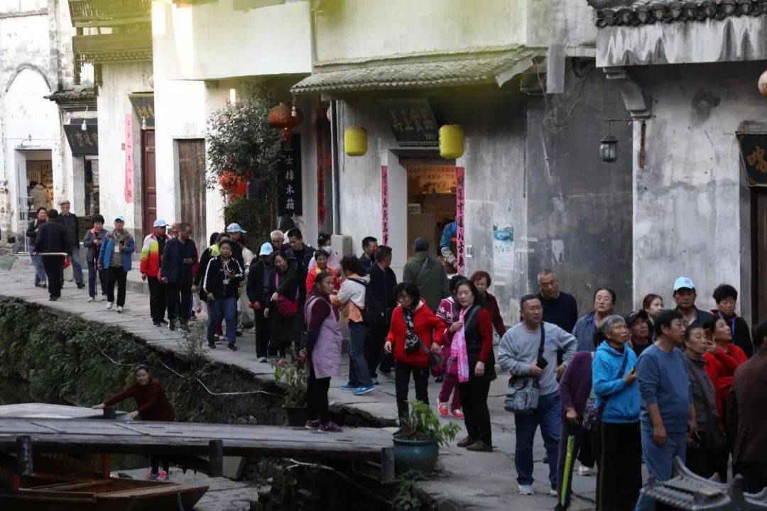 不知不觉便走近了村子,一条充满商业气息的古街展现眼前。村落群山环抱,山清水秀。村中明清古建遍布,民居宅院沿溪而建,依山而立,粉墙黛瓦,参差错落。村内街巷溪水贯通,九曲回环。数十座木石结构的小桥连接两岸,构筑出一幅小桥、流水、人家的美丽画卷。