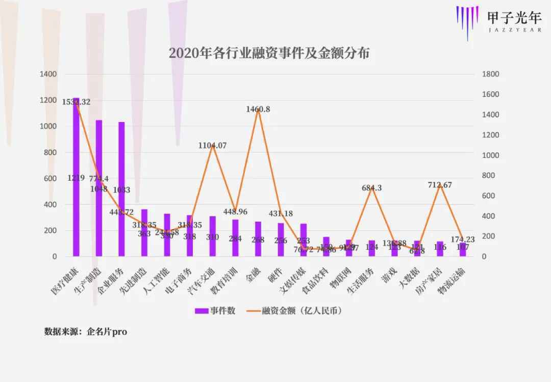 但横向对比,包含大量机器人项目的生产制造、先进制造领域的投资金额在各细分赛道里依然排在前列,生产制造的总融资金额甚至高于近年一级市场的主流领域企业服务。