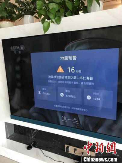 地震发生时,电视用户提前收到地震预警信息。成都高新减灾研究所供图